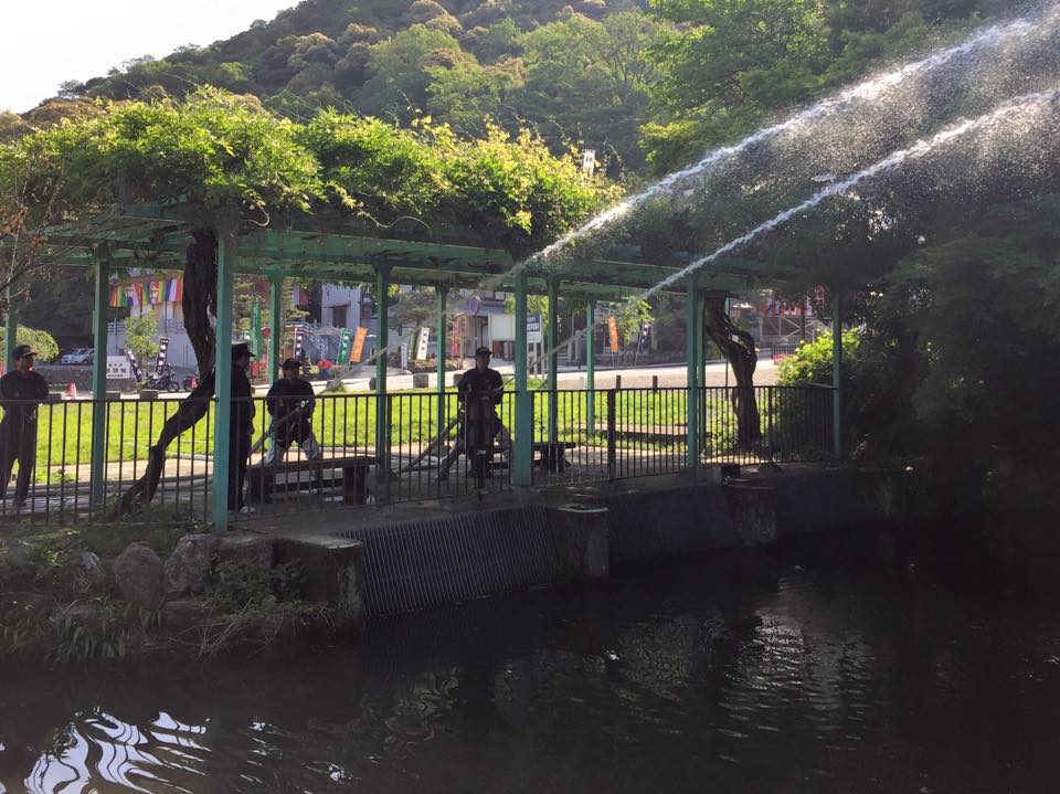 伊奈波神社前広場で放水訓練