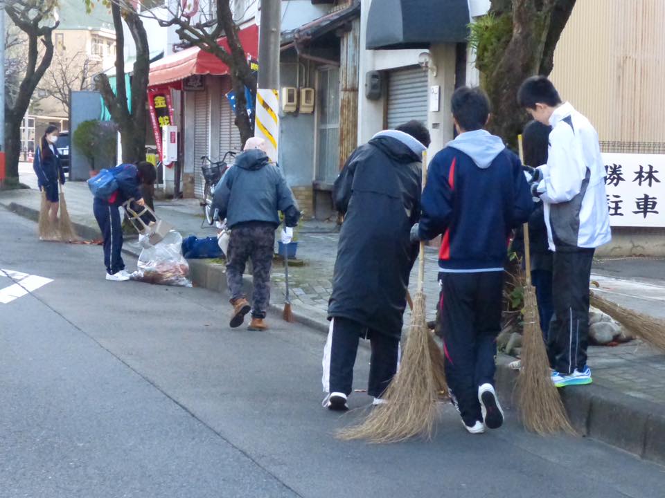 伊奈波通りの落ち葉の清掃